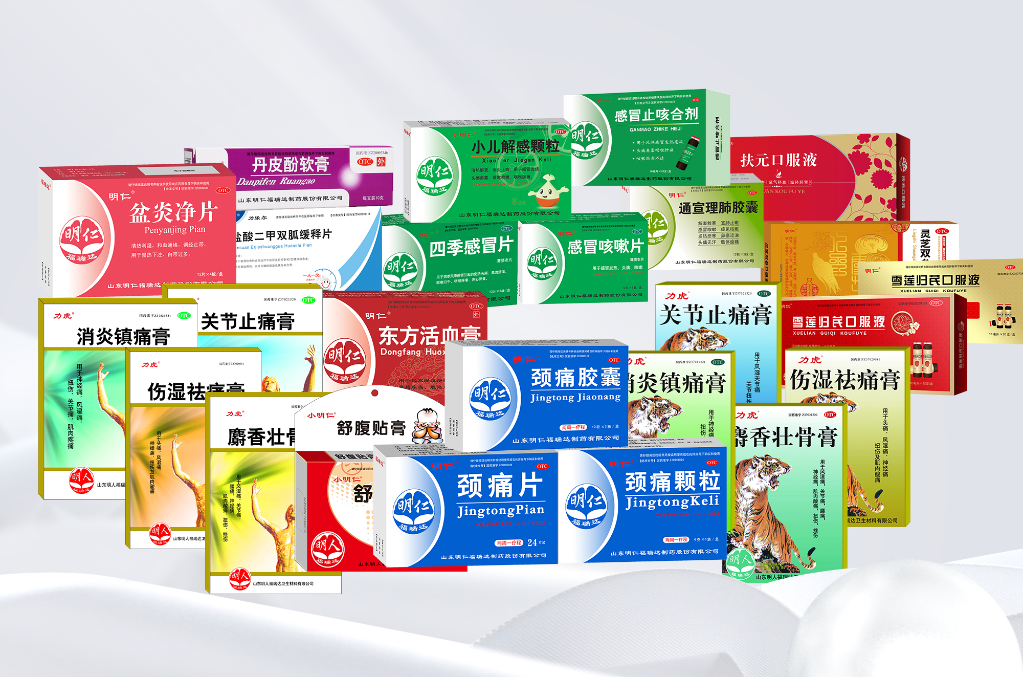明仁福瑞達是生物醫藥板塊的支撐單位,從事中藥藥品、化學藥品、保健食品的研發、生產與銷售的高新技術企業,國家級綠色工廠?,F有20個獨家產品,101個產品文號, 8個大劑型,產品涵蓋了骨科、呼吸科、兒科、婦科、內科、皮膚科、眼科、心血管科等多個領域。其主導品種--頸痛系列產品是治療神經根型頸椎病的系列中成藥,入選山東省火炬計劃、被列為國家重點新產品。